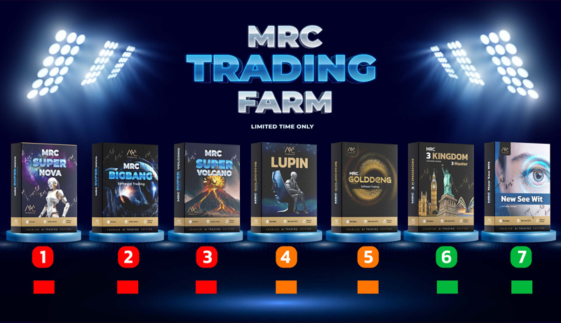 - MRC TRADING FARM ที่สามารถให้นักลงทุนกดติดตาม หรือ Copy สัญญาณได้จาก Masters ที่มีความชำนาญโดยตรงที่ไม่ต้องเทรดเอง ในปัจจุบันเรามี AI และ EA 7 ตัว และอีกหลายตัวที่กำลังพัฒนาที่ให้นักลงทุนกระจายความเสี่ยงได้ตาม AI แต่ละตัว - โดยที่เรามี EA 7 ตัว คู่เงิน คู่ทอง และดัชนี ที่มีความสามารถที่แตกต่างกันโดยเฉพาะความเสี่ยงที่แลกมากับกำไร